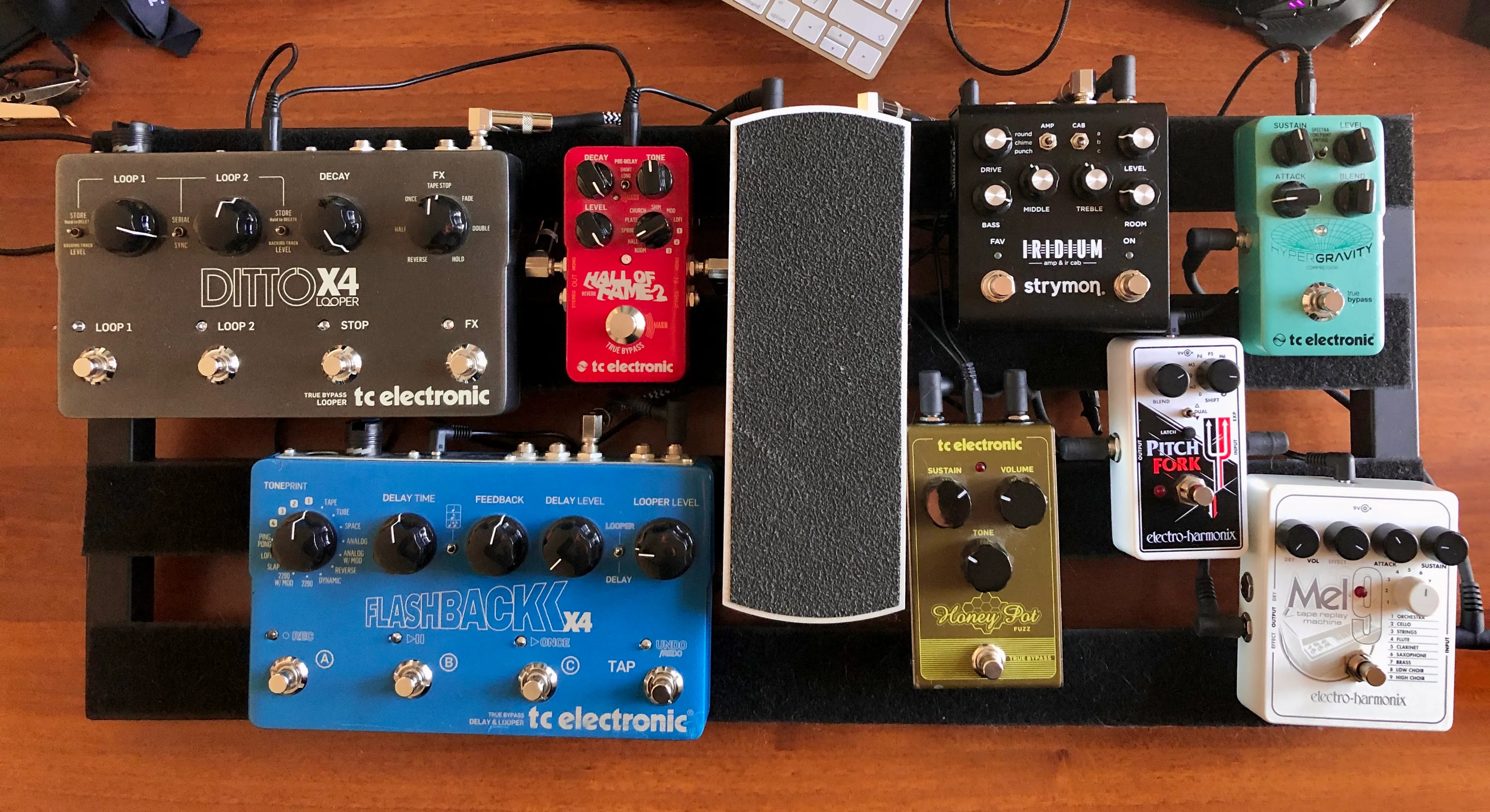 I keep an up-to-date list of what’s on my pedalboard (and around it) on my equipboard profile.