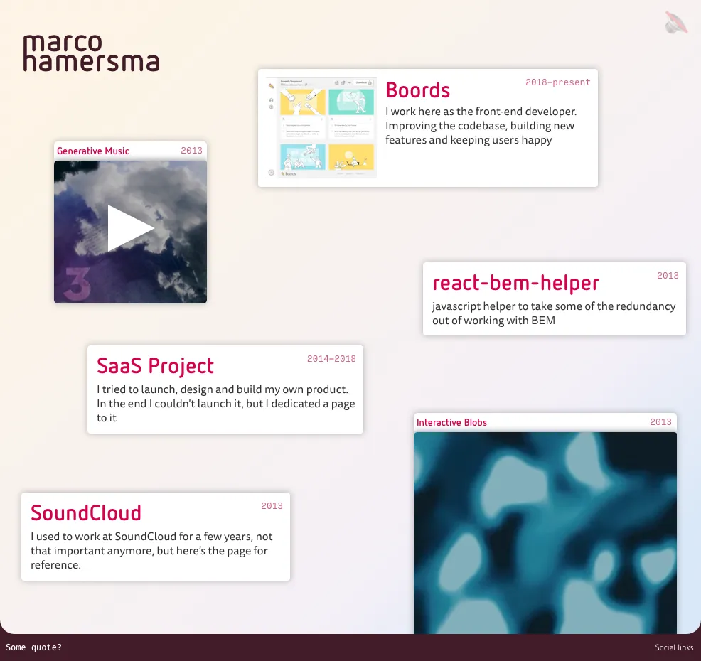 For a long time, I’ve wanted to add a bit more playfulness to the design of my website. I wanted it to feel a bit more like visiting someone’s personal space1, rather than just something formal for potential employers.