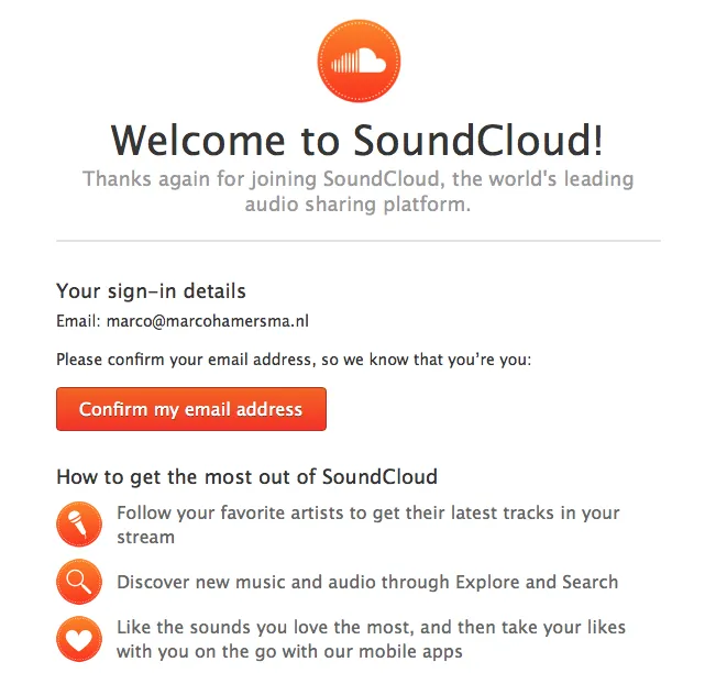I worked on many projects over the years, both in the backend and frontend fields, but here’s three: The new user onboarding on SoundCloud.com, the frontend SoundCloud.com, and various email campaigns and templates for the Growth team.